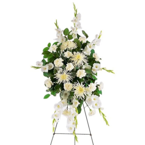Lovely and thoughtful, a traditional remembrance spray of bright white flowers promises that love is eternal, and expresses your sentiments with grace.
