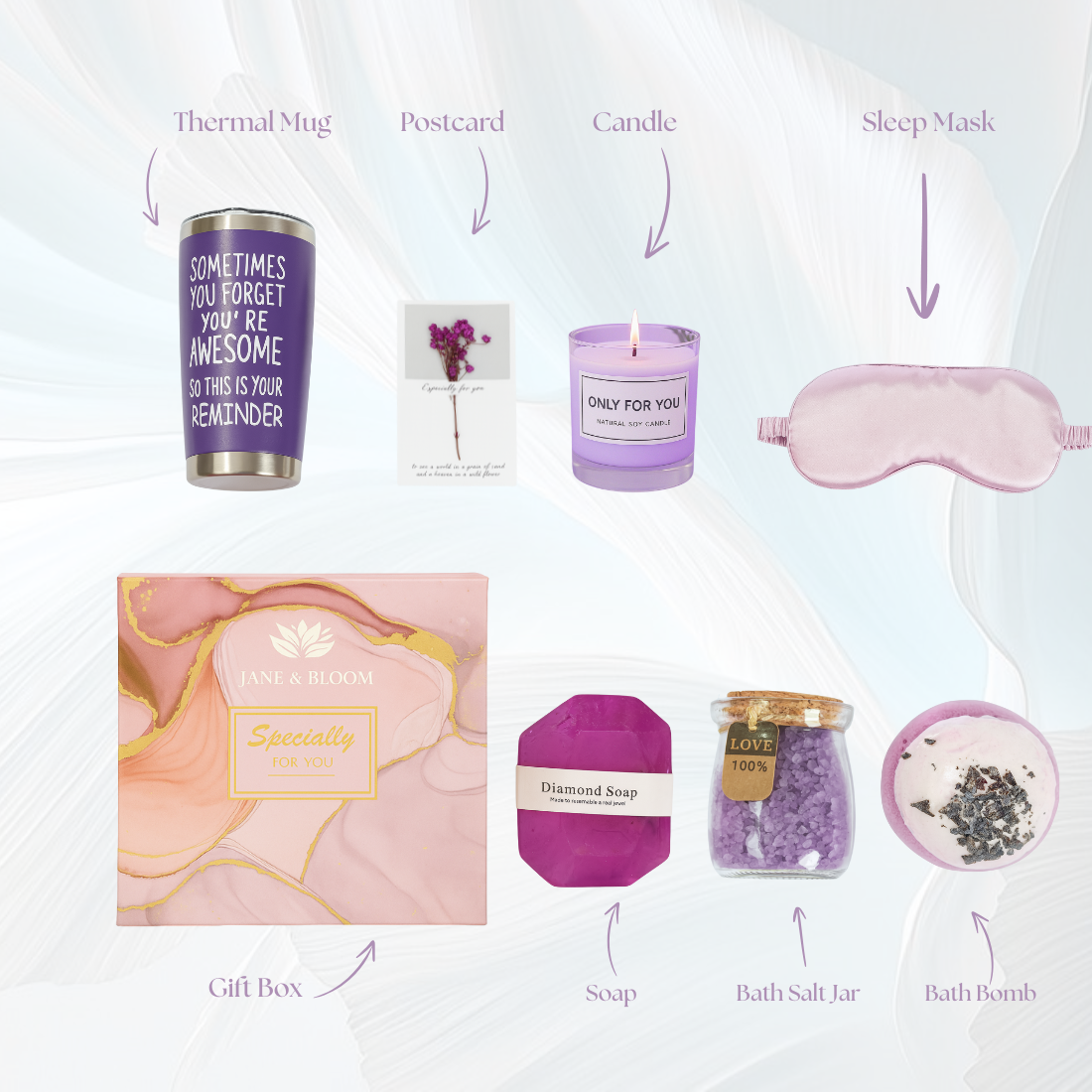Inspired by the soft hues of evening skies and blooming lavender fields, this purple-themed set is a perfect blend of beauty and tranquility. Inside a sophisticated marble gift box, you’ll find:
