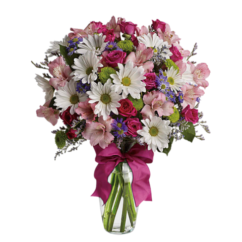 Looking for the prettiest bouquet in town? We’ve got the perfect all-around choice! Pretty Please is a flower bouquet with all the right stuff – a lovely mix of fresh flowers in breezy shades of pink, white, lavender, and more at a wonderfully reasonable price, all tied up with a big pink bow. A great way to make someone smile.